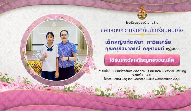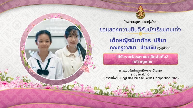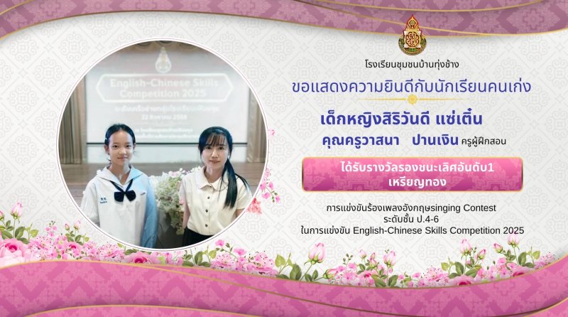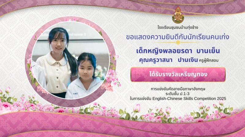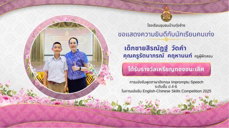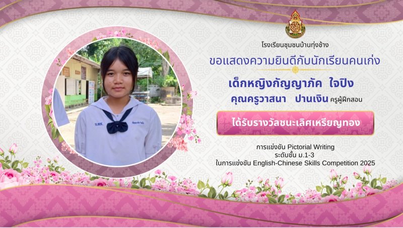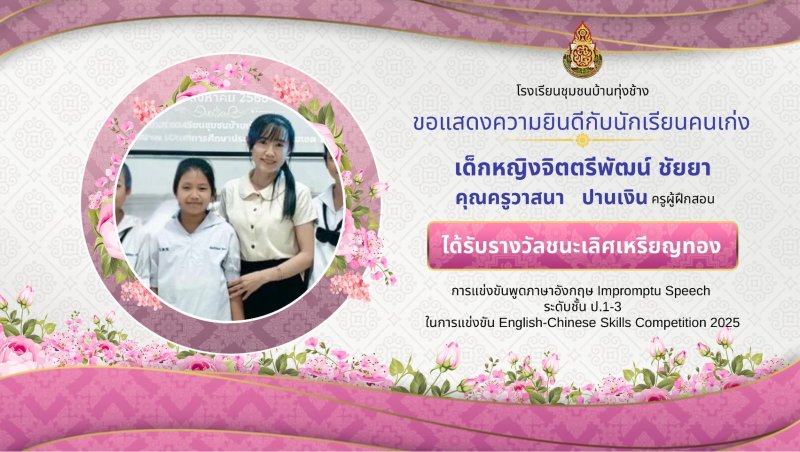 ขอแสดงความชื่นชมยินดีกับผลงานนักเรียน ในการแข่งขันทักษะภาษาอังกฤษ ภาษาจีน ระดับเครือข่ายกลุ่มโรงเรียนเฟือยลุง